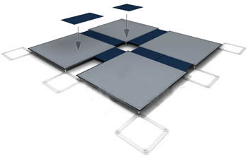 本产品为四角独立支撑结构,扣槽式线槽盖板,地板的上板为超硬质钢板,下板为深拉深级钢板,地板表面经过导电环氧树脂喷塑处理,内腔填充发泡水泥填料,支座为镀锌结构,高度可调并能自锁。
